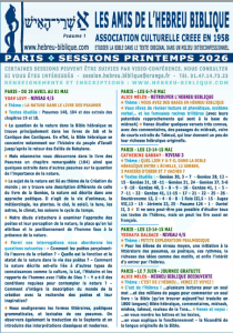 Sessions Printemps 2026 Les amis de l’hébreu biblique