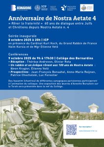 Journée du 9 octobre aux Bernardins : une journée d’étude avec des intervenants de renom tels que Thérèse Andrevon, Olivier Rota, Mgr Étienne Vetö, Rivon Krygier, Jean-François Bensahel, Anne-Marie Reijnen, Patrice Chocholski et Luc Forestier.